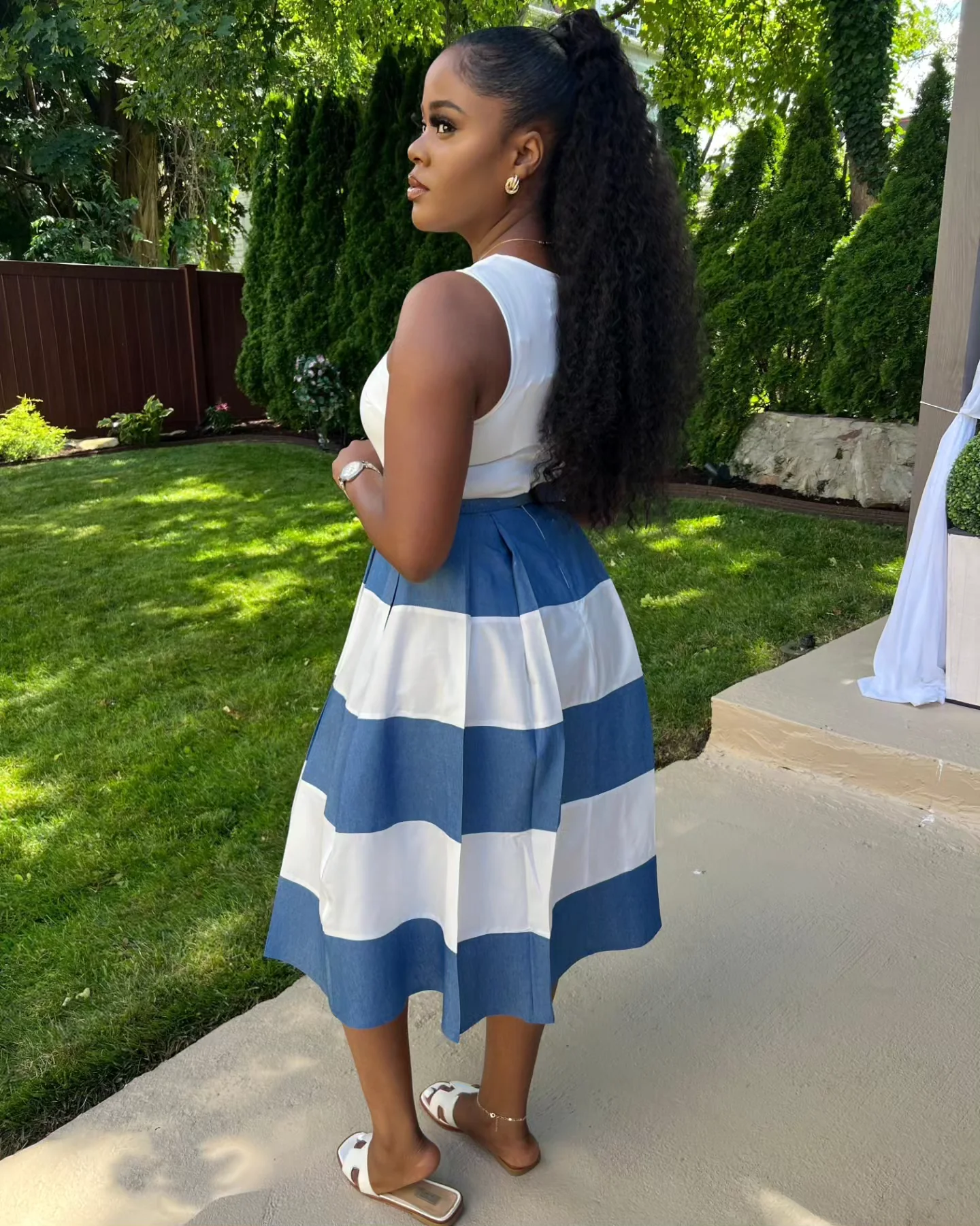 SWEETI SOFT DENIM MIDI DRESS (BLUE/WHITE)